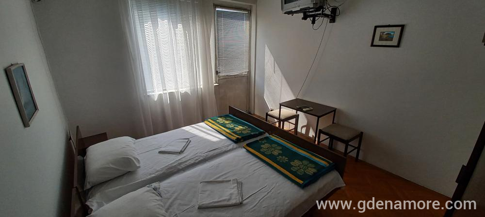 Soba se nalazi na drugoj etazi. Ostalo kao na fotografijama u prilogu.Garazno mjesto za automobil je moguce iskljucivo po unaprijed eventualnom dogovoru, posto objekat posjeduje ograniceni broj parking mjesta. U smjestajnim jedinicama nijesu dozvoljene posjete lica koja nijesu prijavljena stanod...